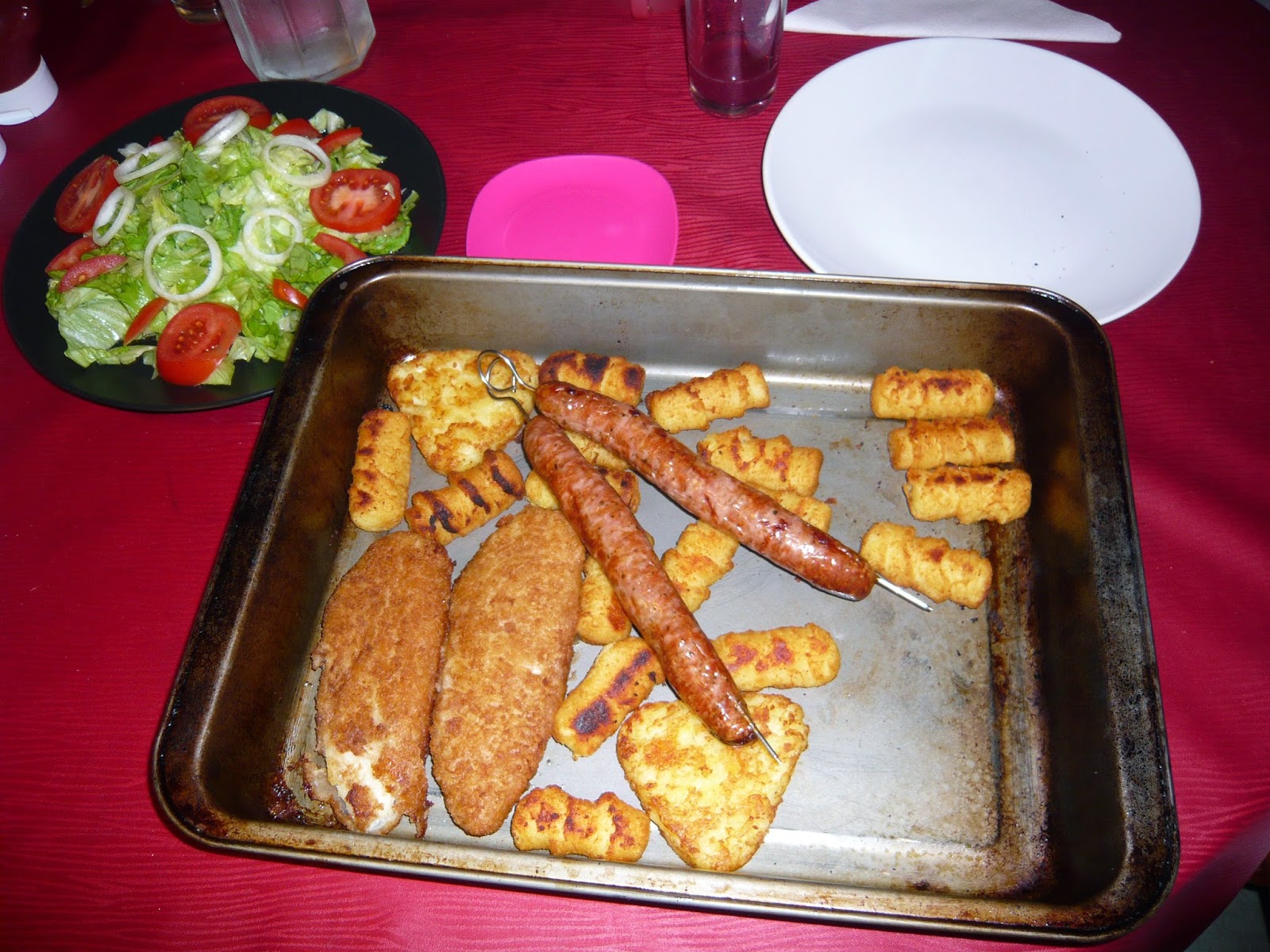 There are several meals you can prepare with sausages, depending on the type. Some can be eaten cold without cooking but some ought to be cooked. These frankfurters were fried, served with garden salad and baked potato waffles.